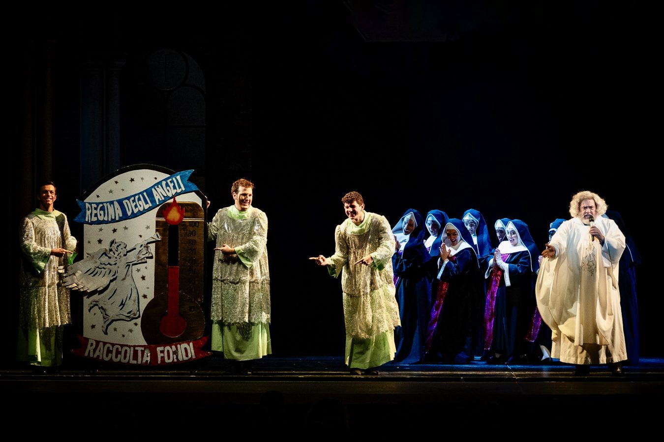 Il musical è tratto dall’omonimo film del ’92 che consacrò Whoopi Goldberg nell’indimenticabile ruolo di Deloris, “una svitata in abito da suora”. A firmare le musiche originali è Alan Menken, otto volte Premio Oscar, considerato uno dei più celebri compositori di soundtrack e musical. Il compositore ha ricreato le roventi atmosfere musicali di quegli anni spaziando dal soul al funk fino alle più celebri hit della disco e facendo di Sister Act una frizzante commedia musicale. Nel 2011 ha ottenuto 5 nomination ai Tony Awards, tra cui quella come ‘Miglior Musical’. Autori del testo sono Cheri Steinkellner e Bill Steinkellner.